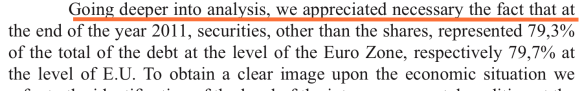 Concluziile (care ar fi trebuit potrivit autorilor să formuleze propuneri pentru o creștere economică sustenabilă) nu există din acest punct de vedere și sunt de-a dreptul, nu mă feresc să o spun, imbecile, măcar și pentru că sunt scrise idiot în limba engleză (foto dreapta): ,,the conditions of the Romania’s accession to the Monetary Union targets too also other….” Ce naiba vrea să spună autorul? Și unde sunt propunerile? Cum s-a împrumutat România? Cum ar fi trebuit să se împrumute România? A făcut sau nu refinanțări ale datoriei publice? Cum sunt scadențele datoriei publice, cum au evoluat, cum au evoluat pe ce tip de scadențe și pe ce monede componentele datoriei publice? NIMIC. Nada. Zero. Niente.
