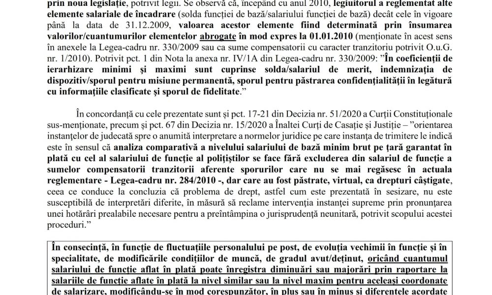 CCR a confirmat rationamentul meu expus mai sus, in interpretarea facuta in decizia 51 din 2020 ( privind sporul de doctorat inlocuit de o suma compensatorie tranzitorie), in care a explicat care este intelesul constitutional ( care se conformeaza Constitutiei) al art.1 (5) din Legea 285 din 2010.
