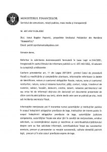 Luna trecuta am solicitat, Ministerului Finantelor, in baza legii 544/2001, sa ne comunice :